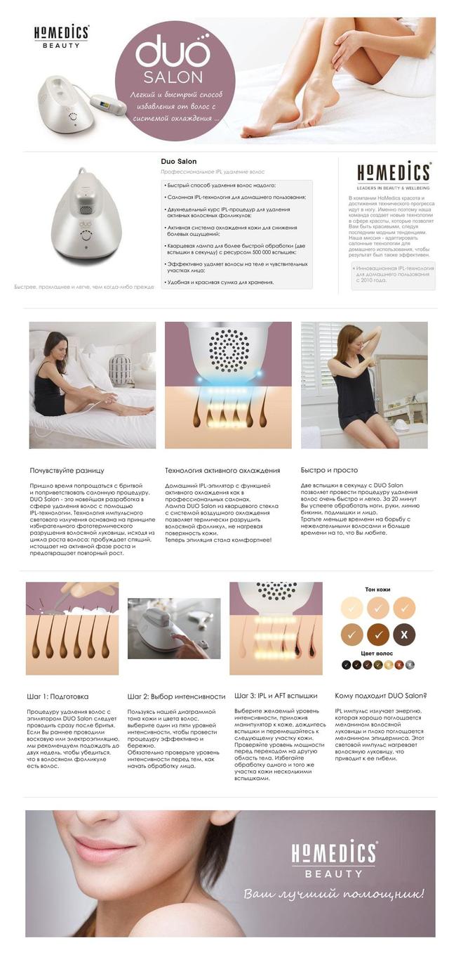 HoMedics DUO Salon AFT + IPL епілятор (лазерний + фотоепілятор), 500000 спалахів